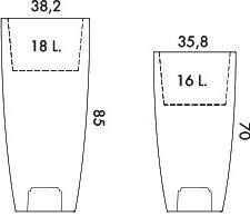 85 cm Höhe: Außen-Ø Pflanztopf: oben 38 unten 25 cm; Innen-Ø Pflanzkorb 33 cm, Innen-Höhe vom Sockel bis oberen Rand 24 cm; Gewicht 3,5 kg