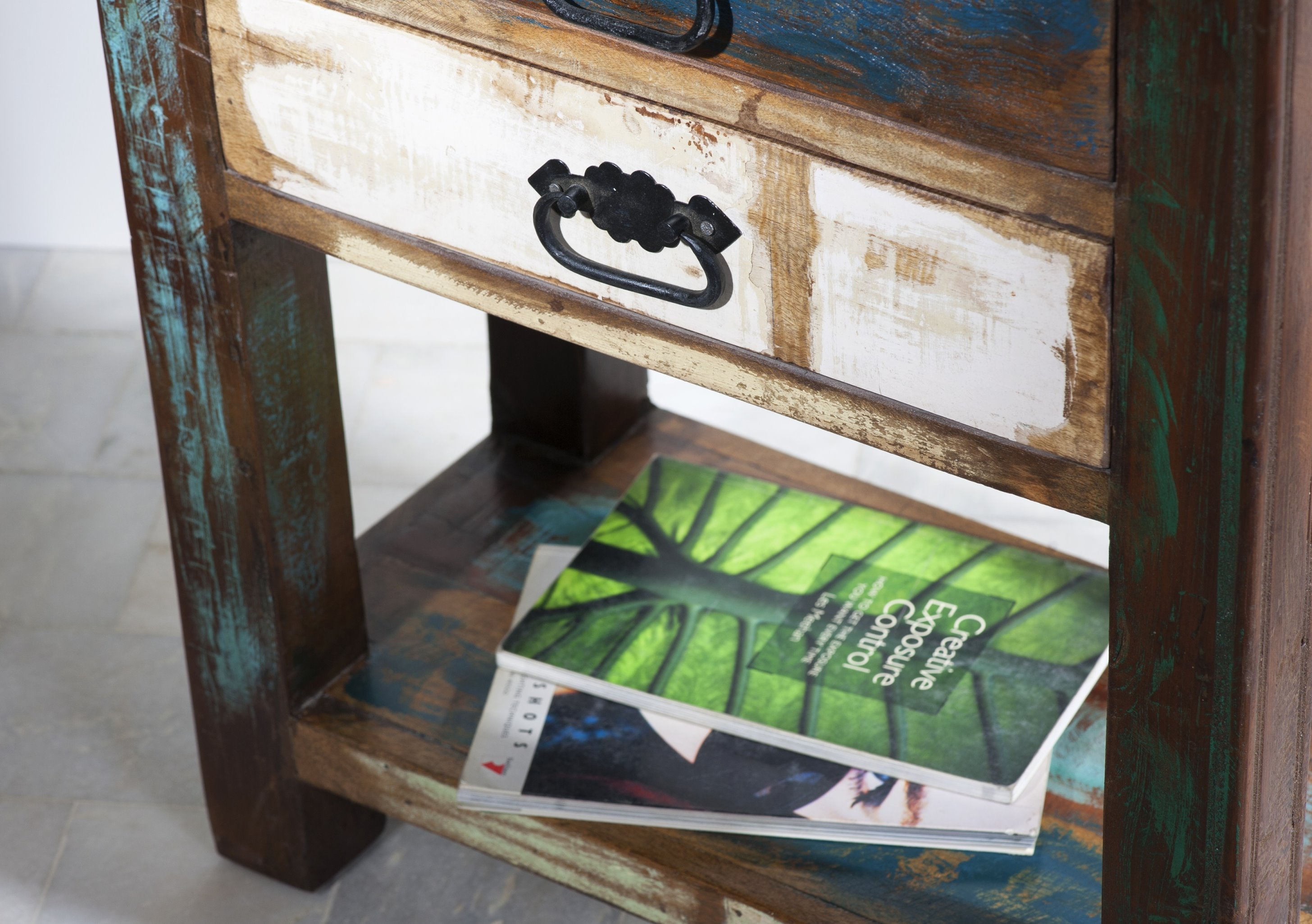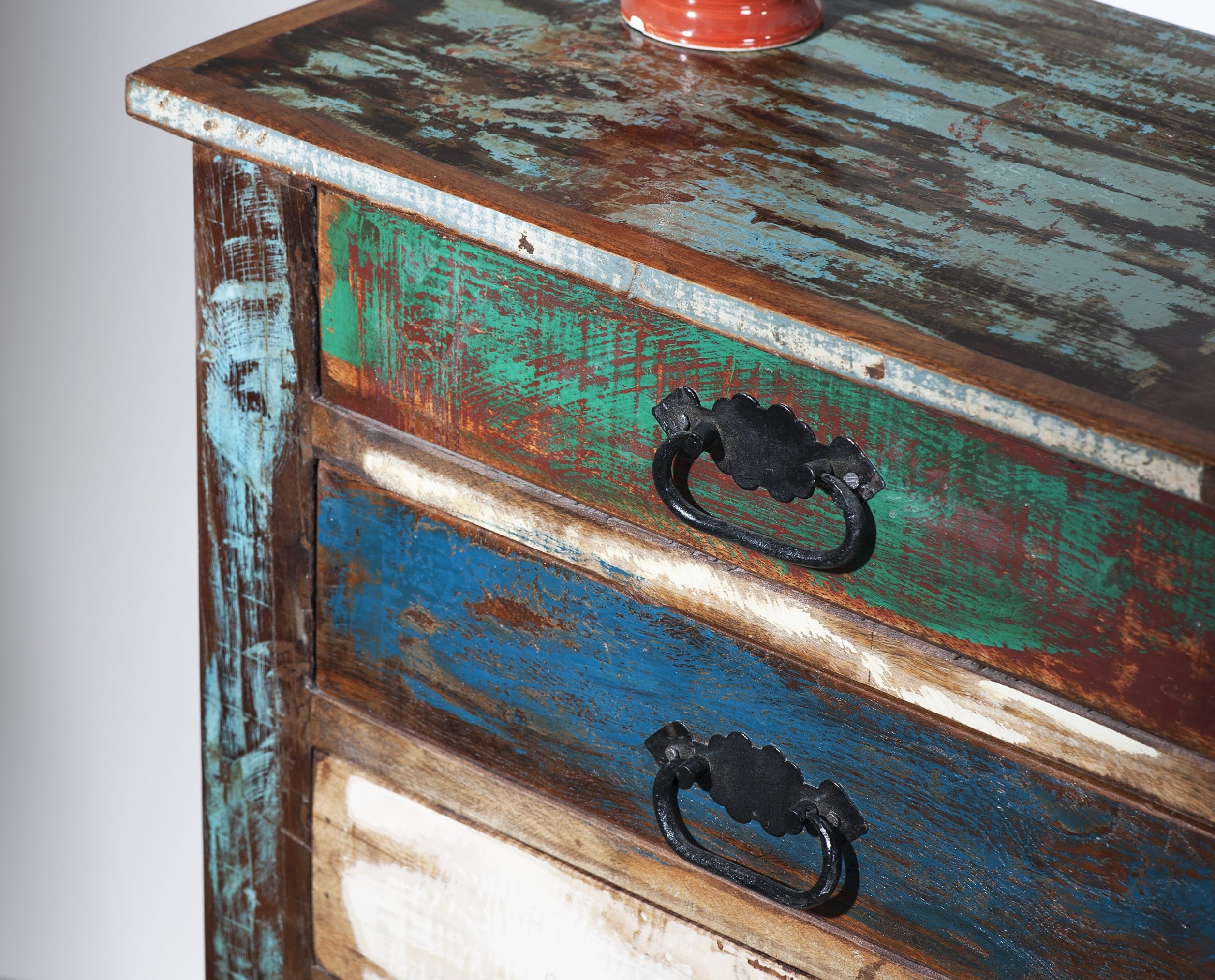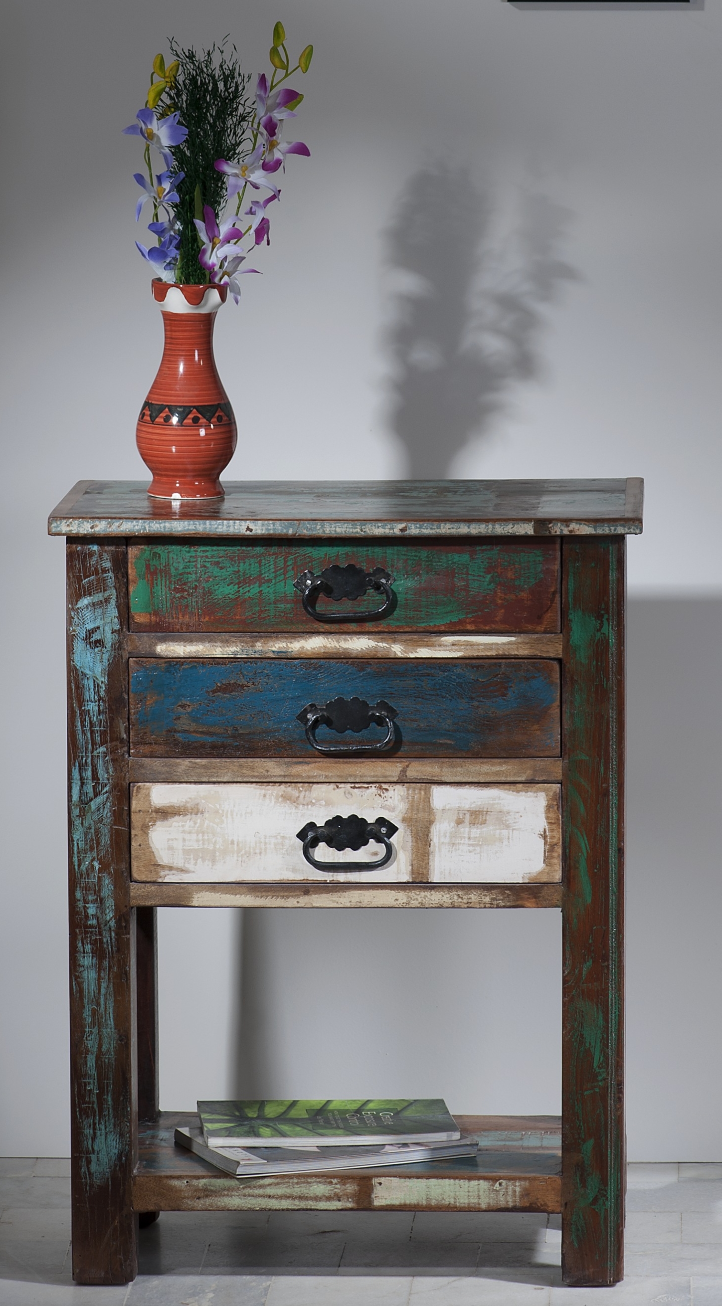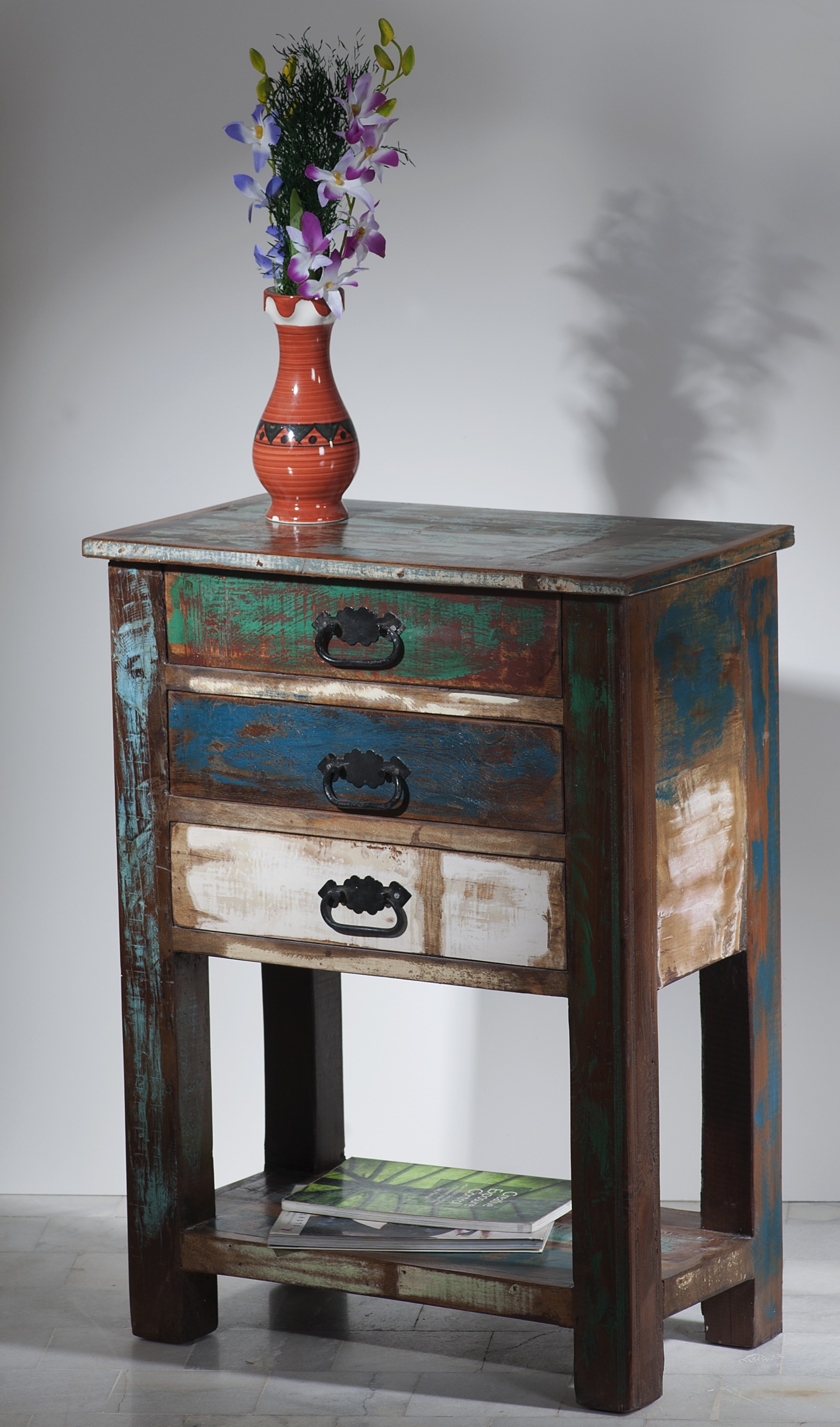 Aus bunt lackiertem, echtem Altholz im Vintage Look Mit 3 Schubladen und 1 Ablagefläche... mehr