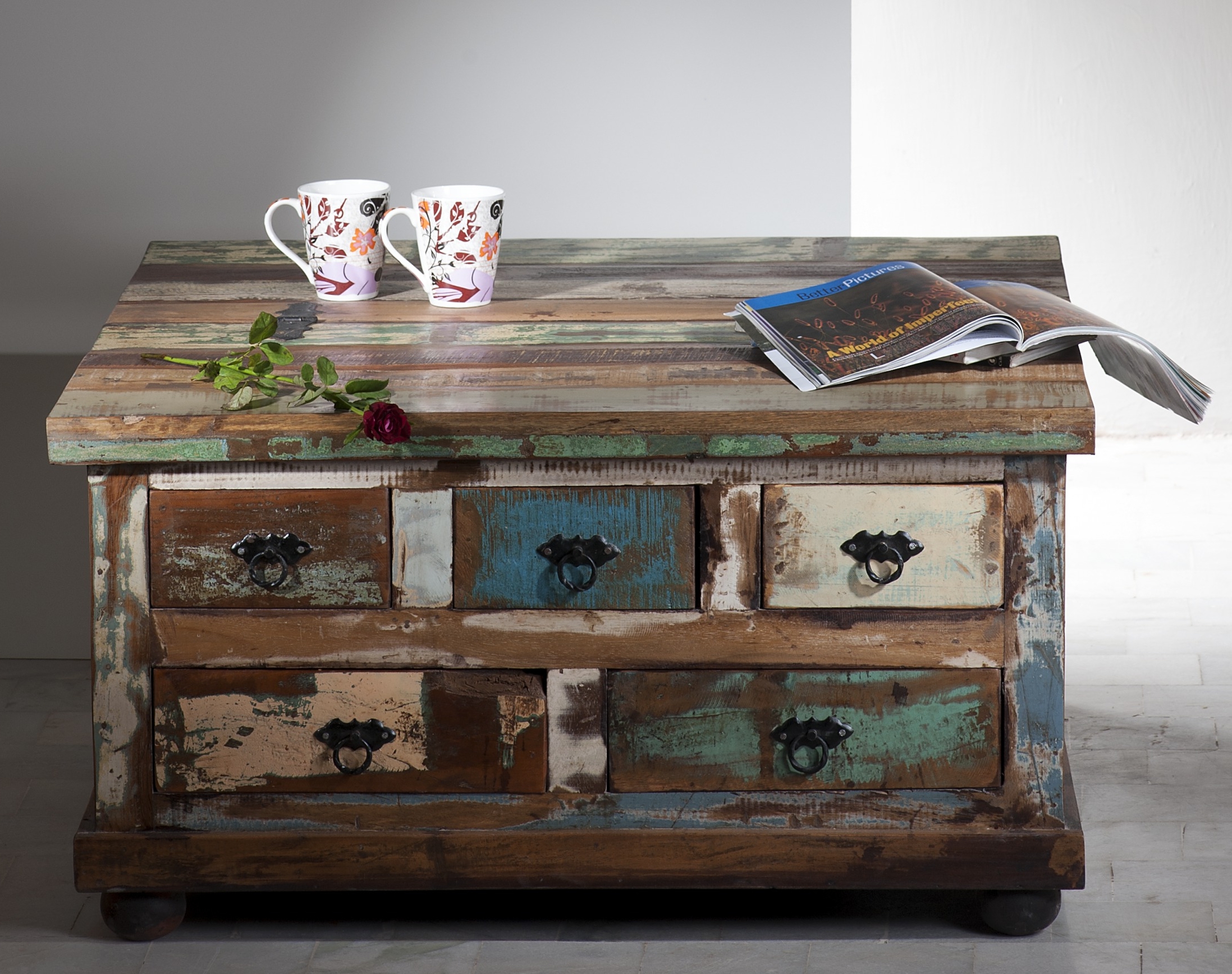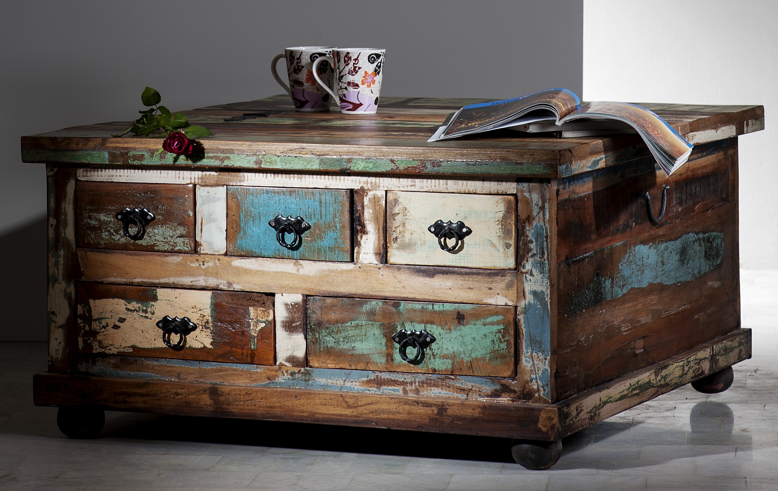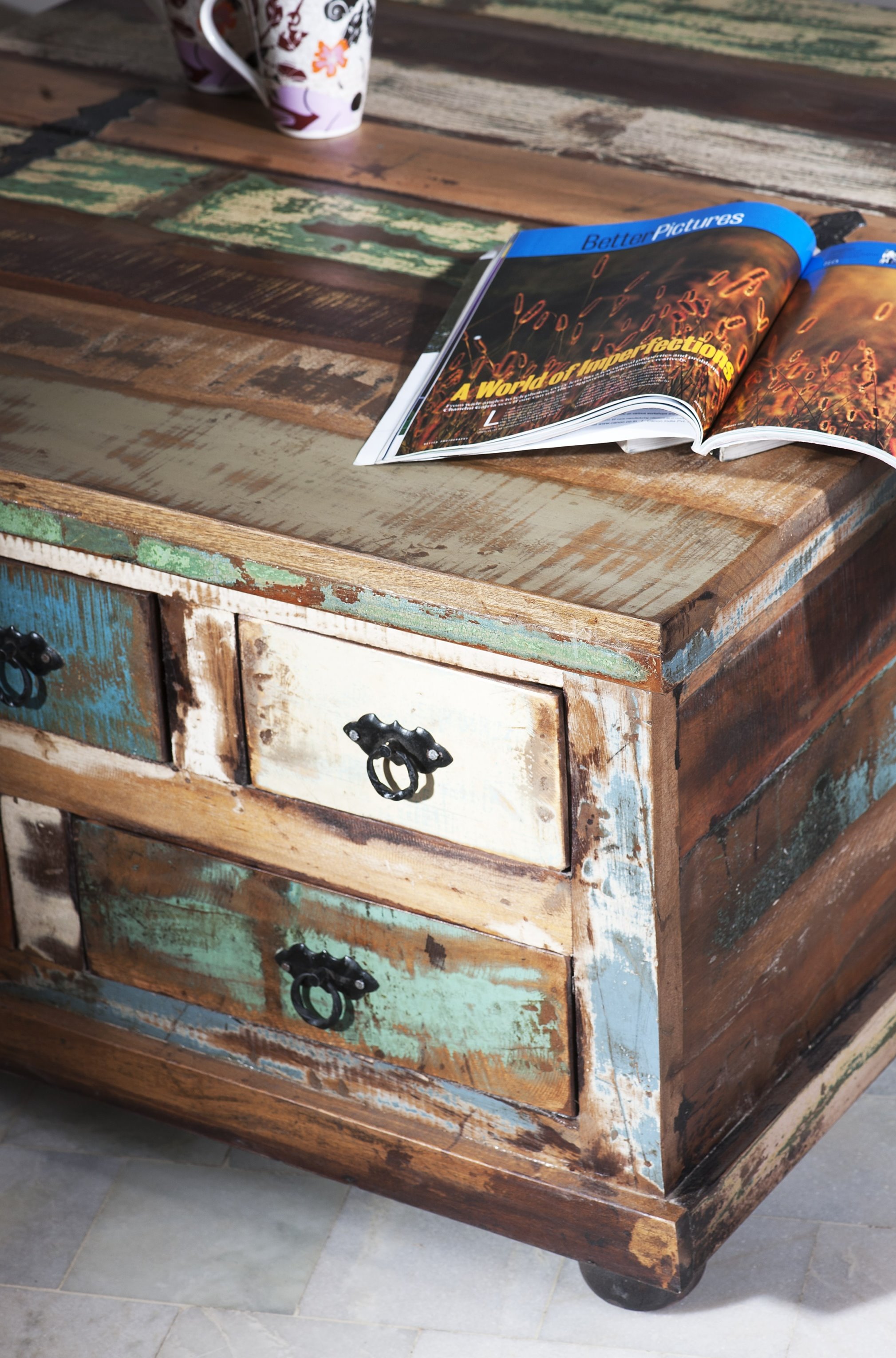 Weiterführende Links zu "wonido Couchtischtruhe / Beistelltisch, "Vintage Look", Altholz, bunt, B90 x T90 x H47 cm"