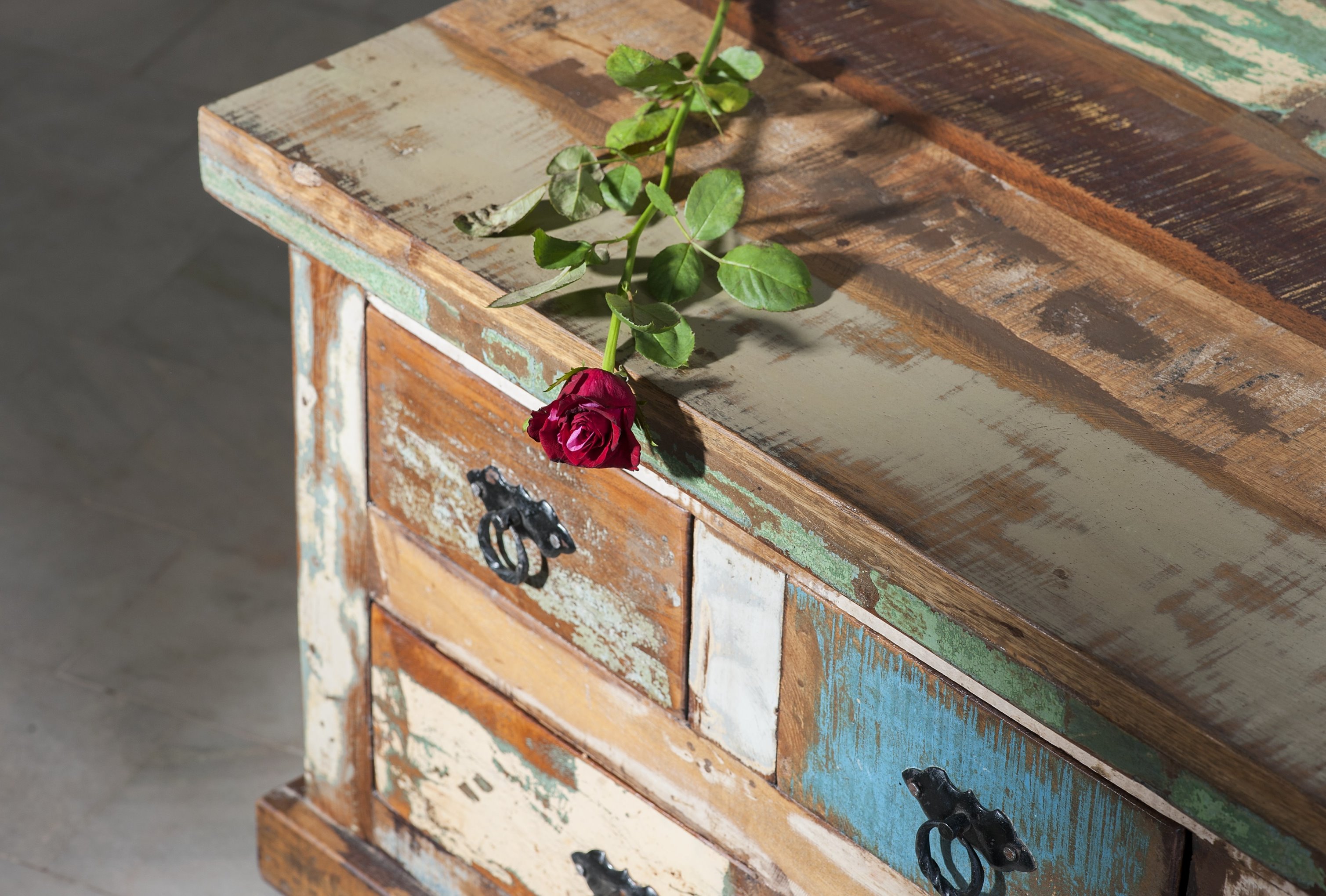 Aus bunt lackiertem, echtem Altholz im Vintage Look Mit 5 Schubladen und Stauraum innenliegend... mehr