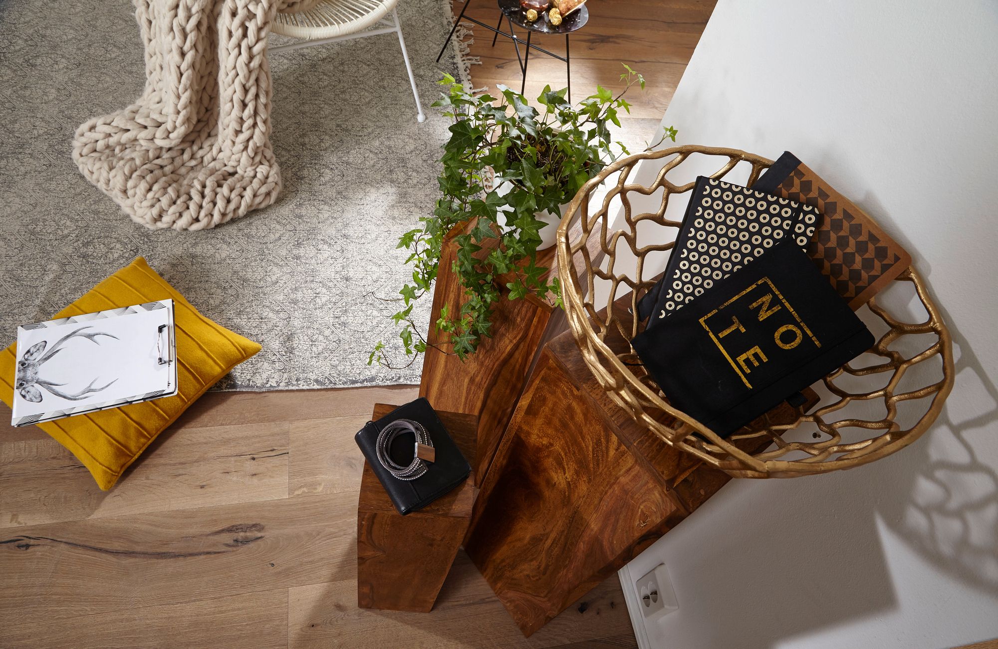 Ein Beistelltisch-Set ohne Dekoration. Lieferzustand: montiert und praktisch verpackt. Es ist keine Montage nötig.