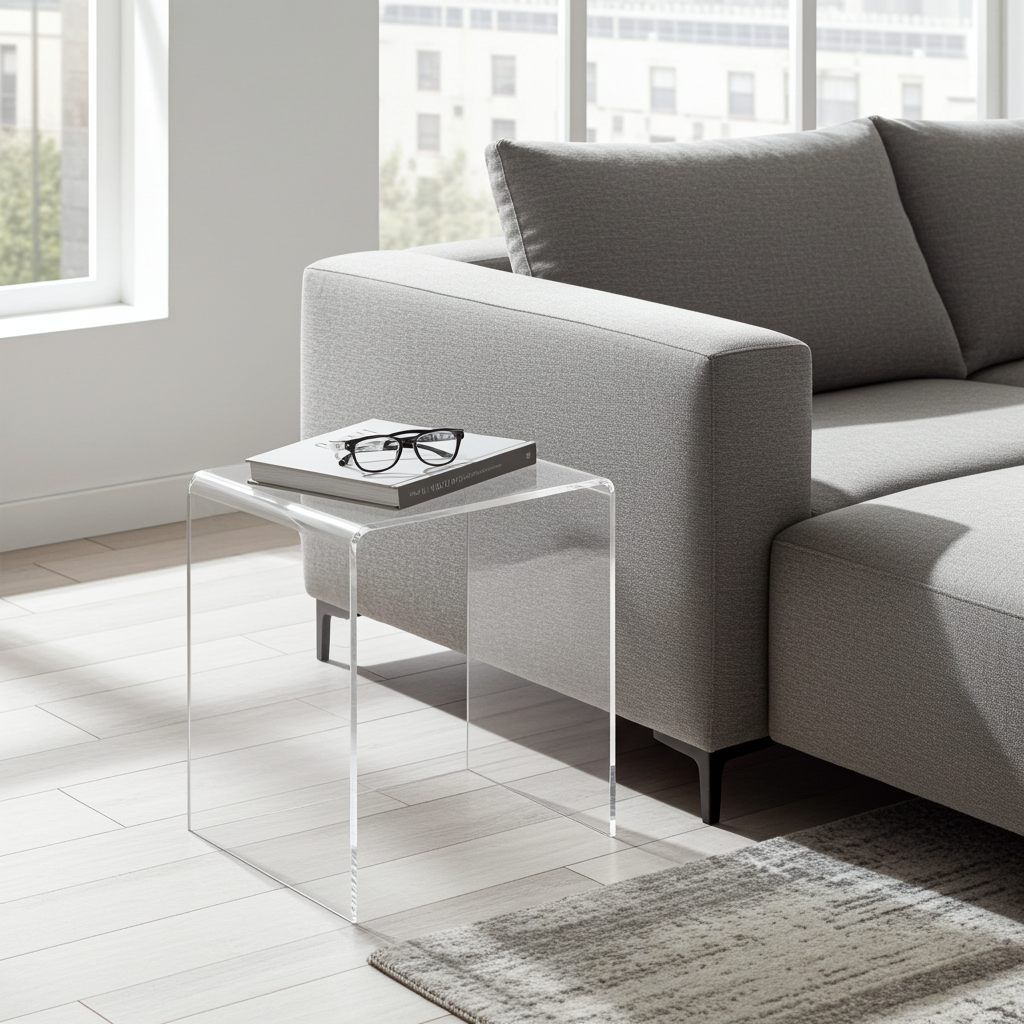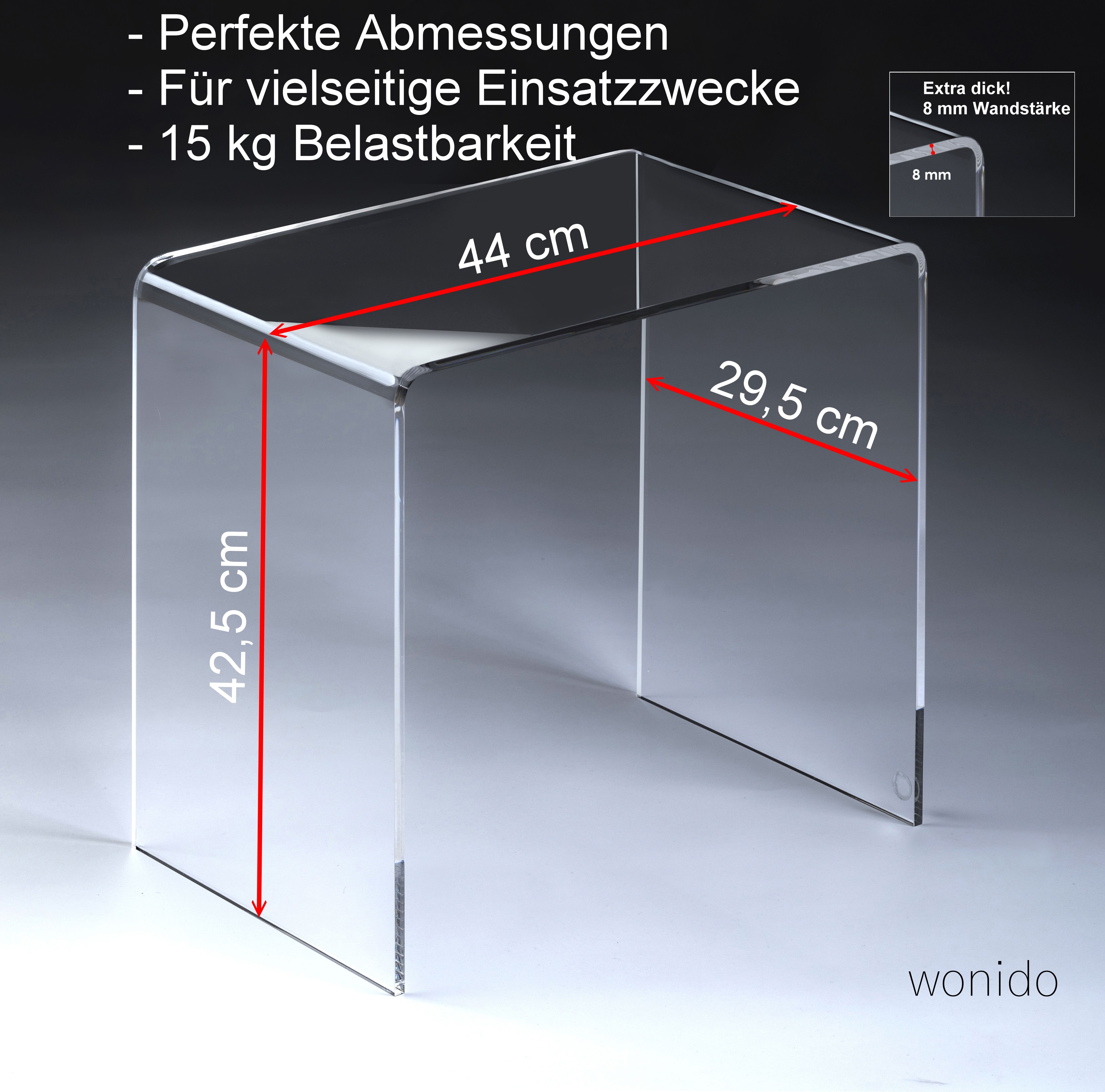 wonido Hochwertiger Acryl-Glas Beistelltisch/Nachttisch, B44 x T29,5 cm, H 42,5 cm, Acryl-Glas-Stärke 8 mm, "Das Original"