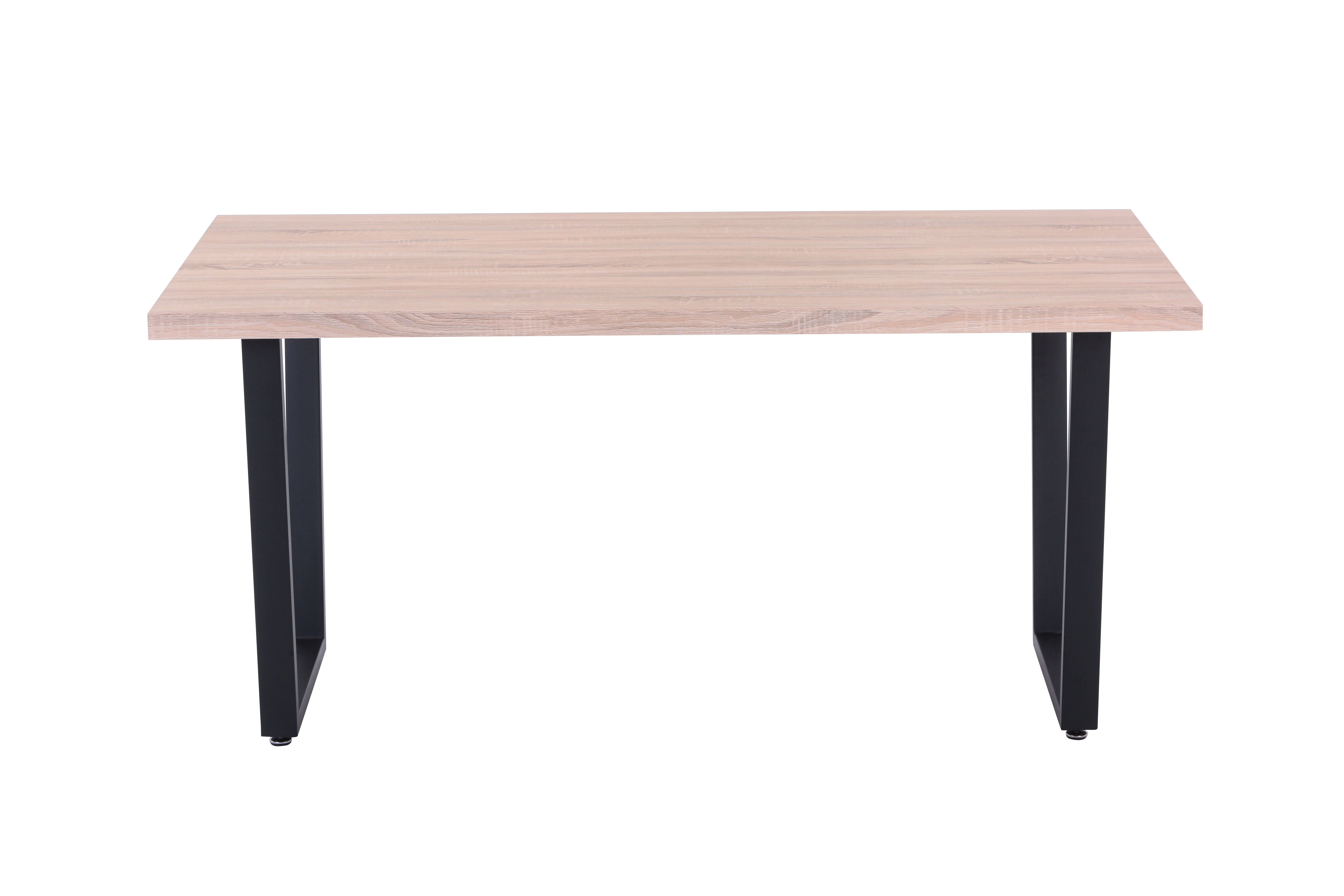 Plattenstärke 40 mm, Gestell 6x3 cm, Abstand vom Gestell zur kurzen Seite 13 cm | Platte natur, Gestell schwarz | modernes Design | trendiger Materialmix | Tischplatte mit Sonoma-Eiche Dekor | Kufengestell sorgt für festen Stand | pflegeleichte Oberfläche | Gewicht: 34 kg