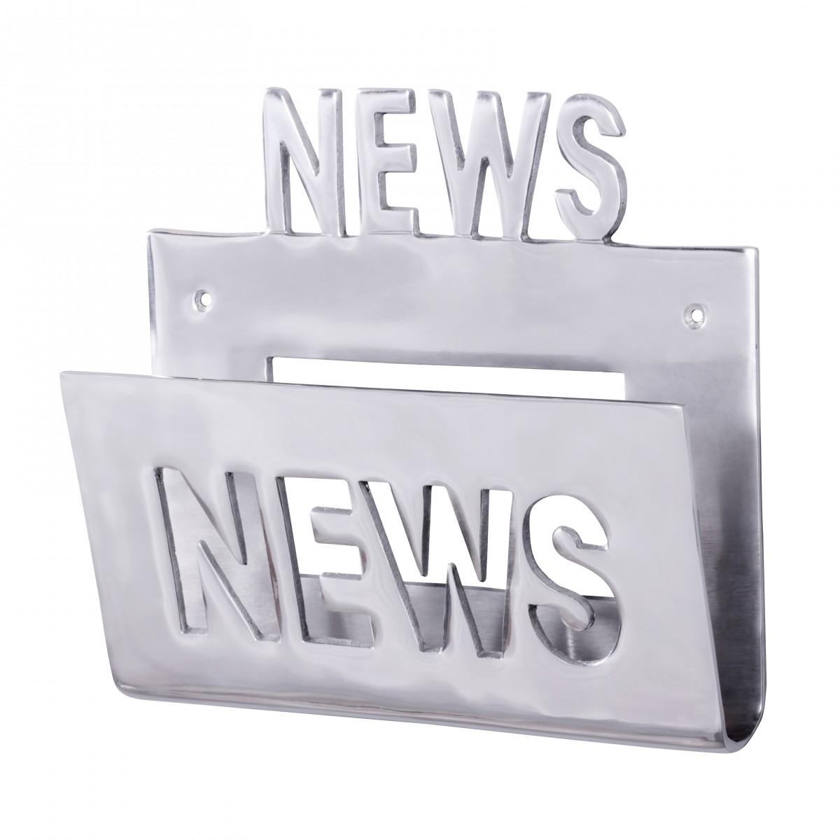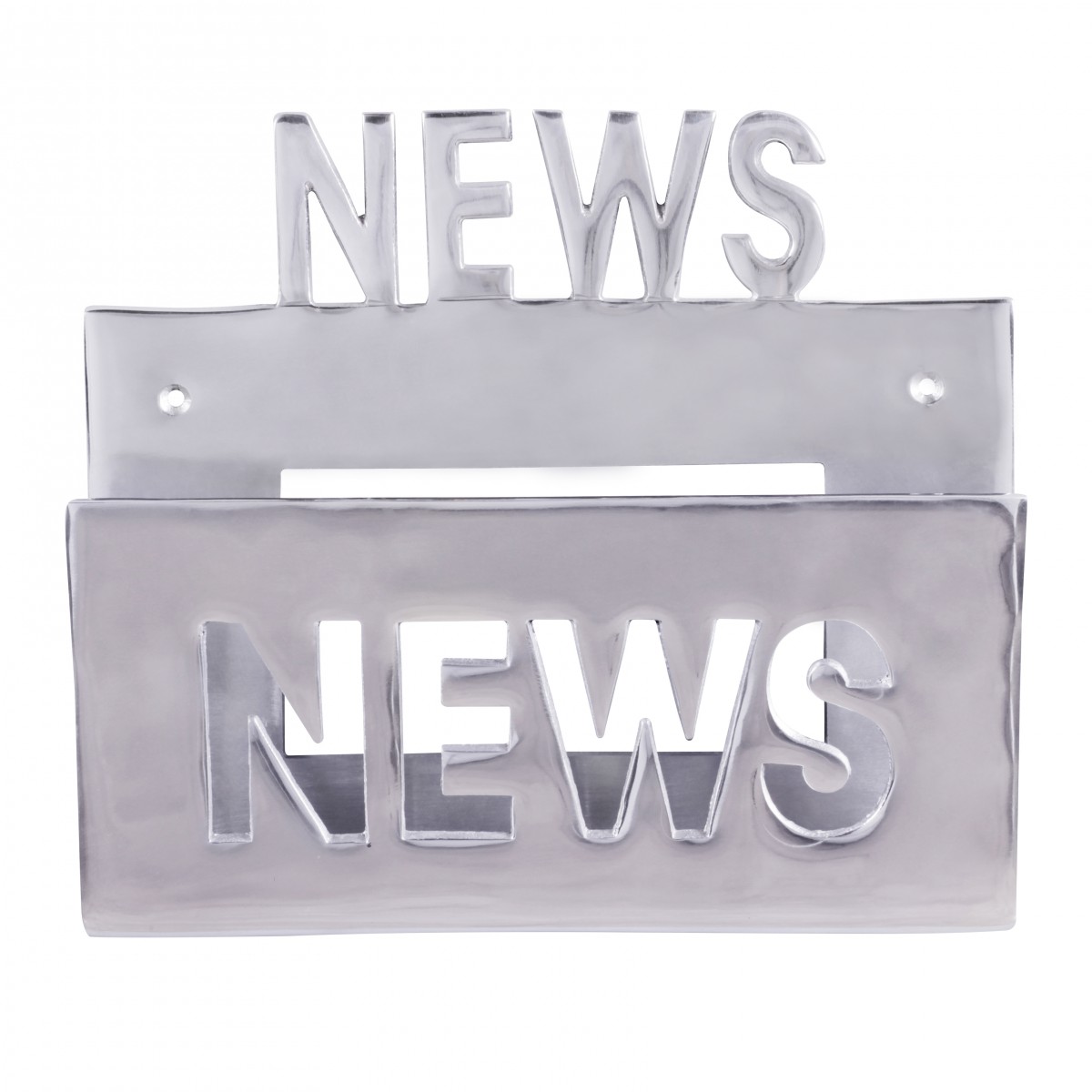Produktinformationen "wonido Zeitungshalter / Wanhalter für Zeitschriften als Unikat aus Aluminium, Handarbeit, silber, Schriftzug: "News""