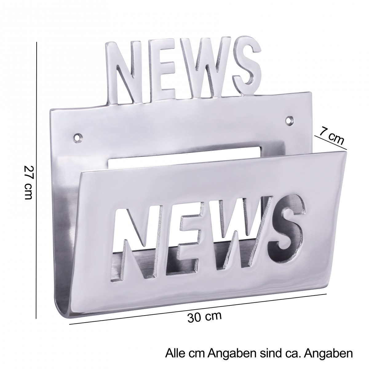 Weiterführende Links zu "wonido Zeitungshalter / Wanhalter für Zeitschriften als Unikat aus Aluminium, Handarbeit, silber, Schriftzug: "News""